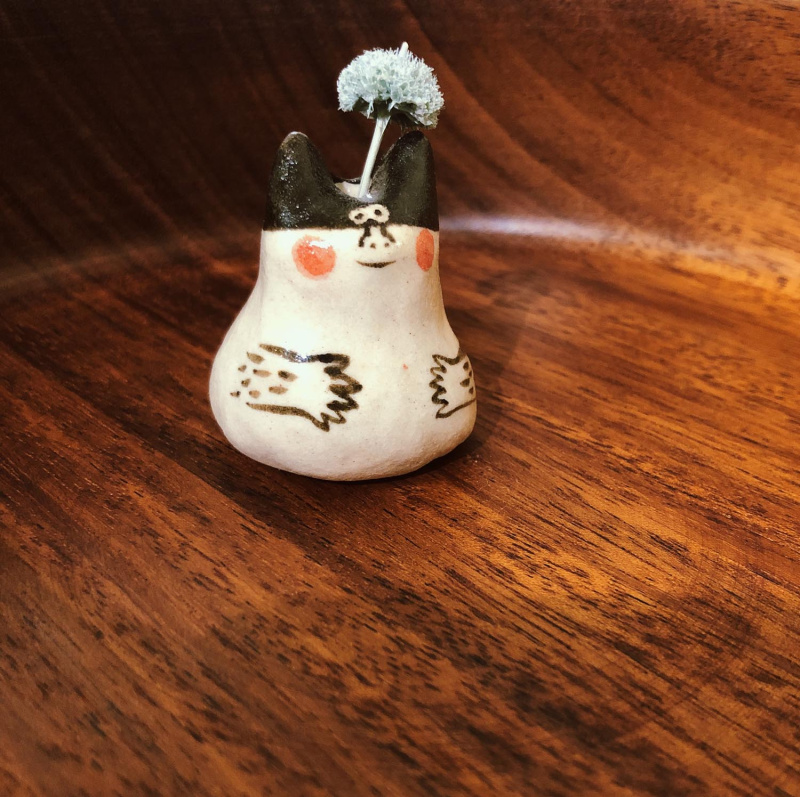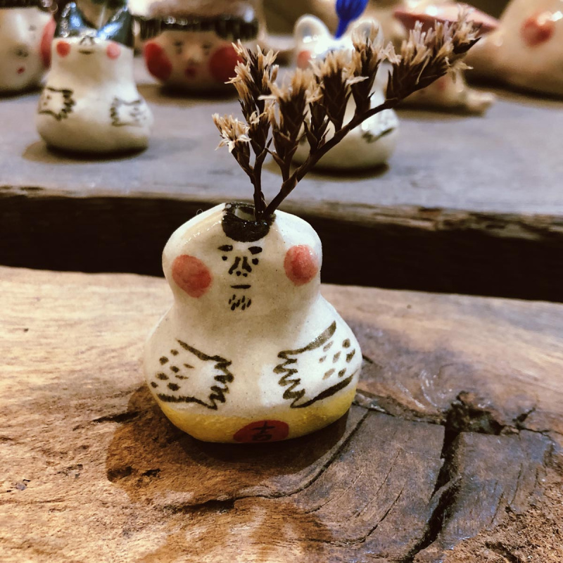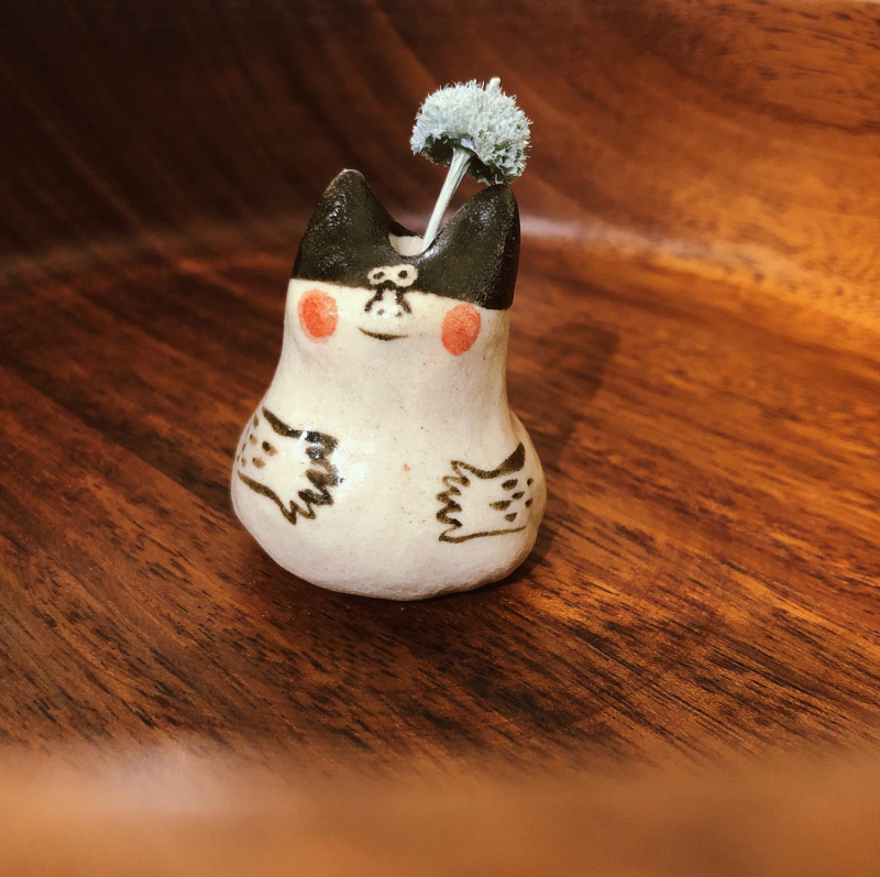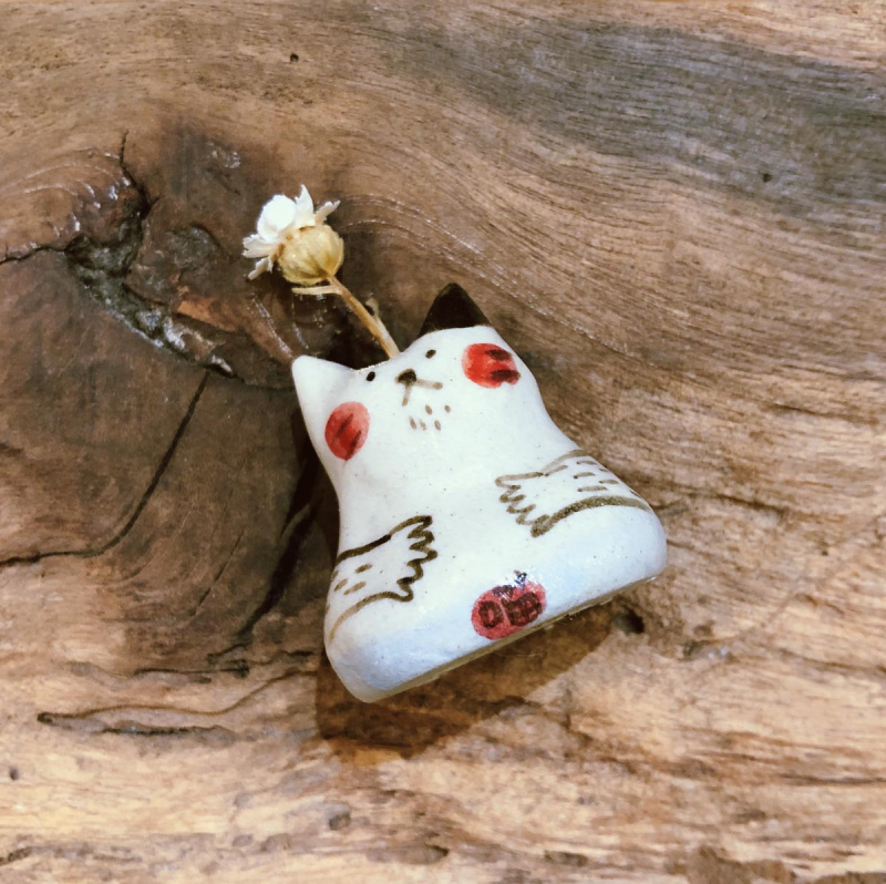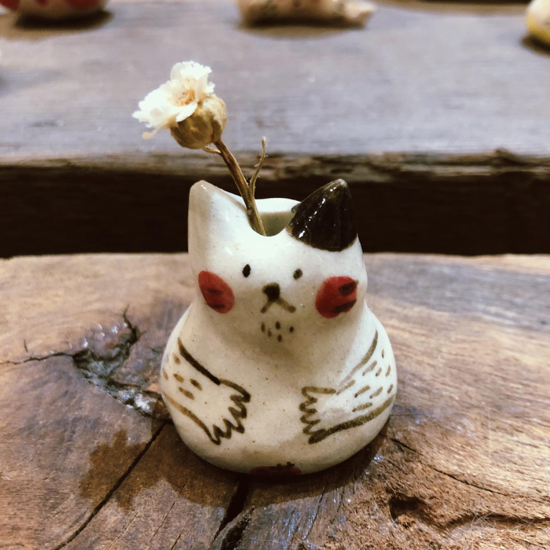 頭上擺放了可愛的小花,更療癒你的心。因爲手捏,每款都會有些微不一樣,依實物為主,也可至方間冶所工作室現場挑選。